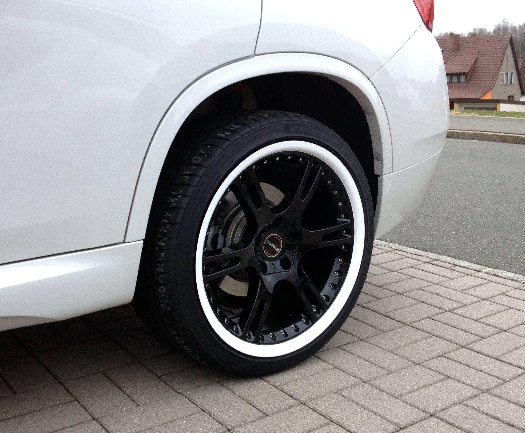 Die ersten Bilder mit Sommerreifen. Es handelt sich um Felgen von Voolium mit der Bezeichnung V6. Als Reifen haben wir uns für Hankook entschieden in 225-40/19 und 255-35/19.